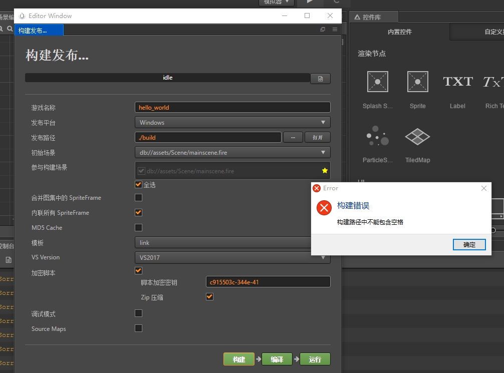 构建windows平台时提示"构建路径中不能包含空格"