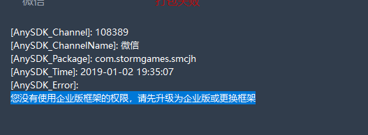 框架问题,替换成线上的通用版框架就好了。区别就是有没有AnySDK字眼了。