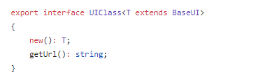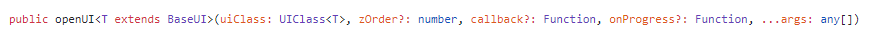 接口中new():T是为了在openUI中uiClass传递T类,而不是T类的对象。尖括号是泛型表示这个T类继承自BaseUI