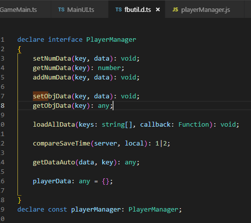 而playerManager只发现在fbutil.d.ts里面有引用,网上查了一下这个是为第三方库添加的声明文件。