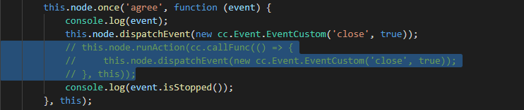 各位大佬,以及creator官方工作人员大家好!我是一个新晋程序员,刚接触编程3个月多点,目前遇到一个小问题,我不知道是我操作有问题还是怎么回事,恳请各位不吝赐教!我有一个节点A,挂载了按钮B和按钮C,其中,按钮C为预制件,点击C按钮冒泡一个事件c,节点A监听到c以后冒泡一个事件a,上层节点有的监听c,有的监听a,现在的问题是,当节点A监听到c以后再冒泡事件a,c事件的_propagationStopped属性会被莫名奇妙的变为false,且上层节点只能监听到新的冒泡事件(即a事件)。