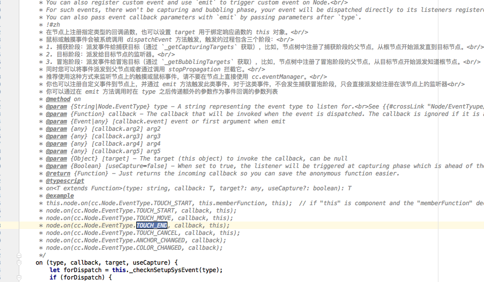 this.node.on(‘touchstart’, callback, this); or this.node.on(‘touchend’, callback, this);