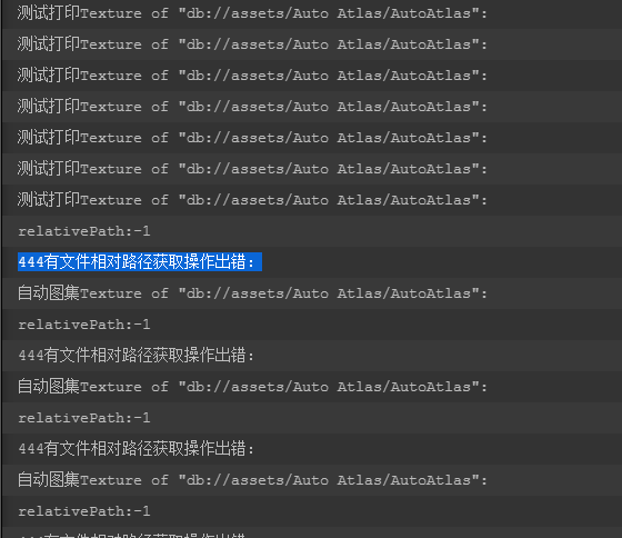 而且很多很多。后来我把所有自动图集的给删掉了还是有这个日志。但是不影响打出图集,在生成的项目里面 res/raw-assets 也是有图集的。但是我很担心这个问题,也找不到该目录全局搜索没出现这个目录,有人说是空格问题,但是我搜不到这个目录…有大神能指点一下嘛谢谢啦!!!!我很慌