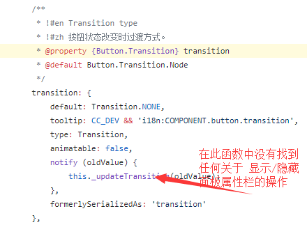 看了半天button的git,没有找到操作面板上的属性栏显示与否的操作。