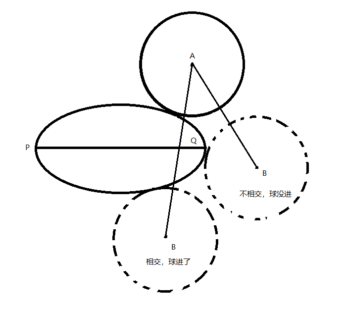 你这个问题有点意思,如果单纯的2D游戏,球是个圆,蓝框是个椭圆直径PQ。
