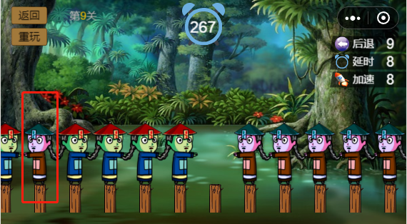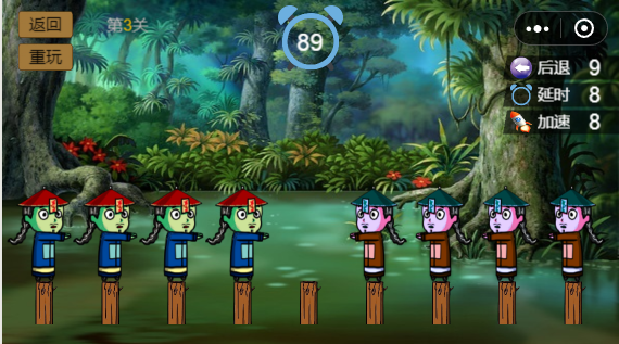 需要考虑的是,点击一个僵尸以后,不能让两个同向的僵尸挨一块,否则游戏就没法继续下去了,这是游戏的重点,当然你可以选择使用“后退一步”的道具退回到上一步。