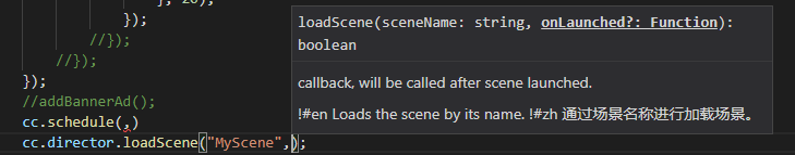 在同样的cocos注释里,我做了对比,发现场景加载的回调方法是不一样的 这个回调的解释是callback,但是场景加载的方法加载则是onLuanched。