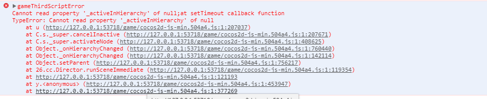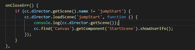 从游戏场景跳转到初始场景界面,报错 代码如下: