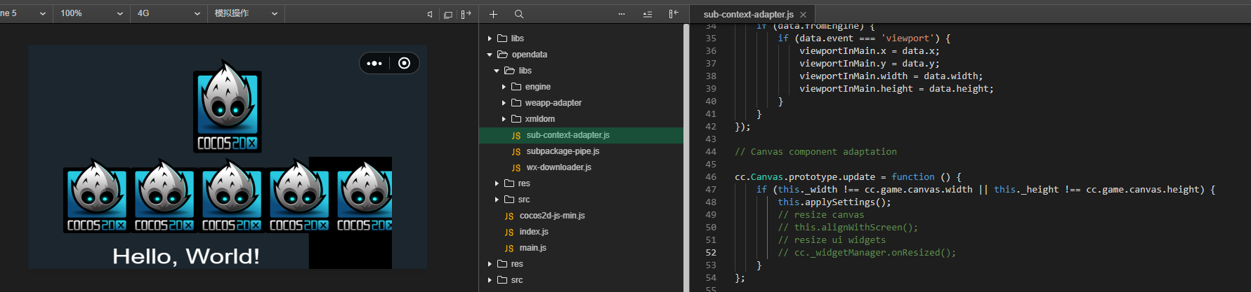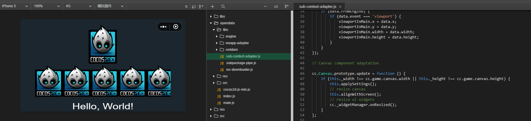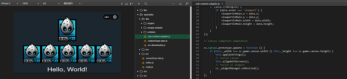 而直接用Creator release版本编译运行适配效果不正常,子域并非按照fixed height策略适配到主域wxsubcontent区域