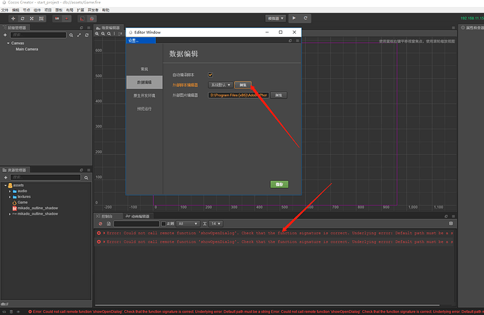 哪一个版本的编辑器?我用2.0.8版本的编辑器在win10下,选择默认脚本编辑器为系统默认,然后点击浏览,并没有出现这个错误。