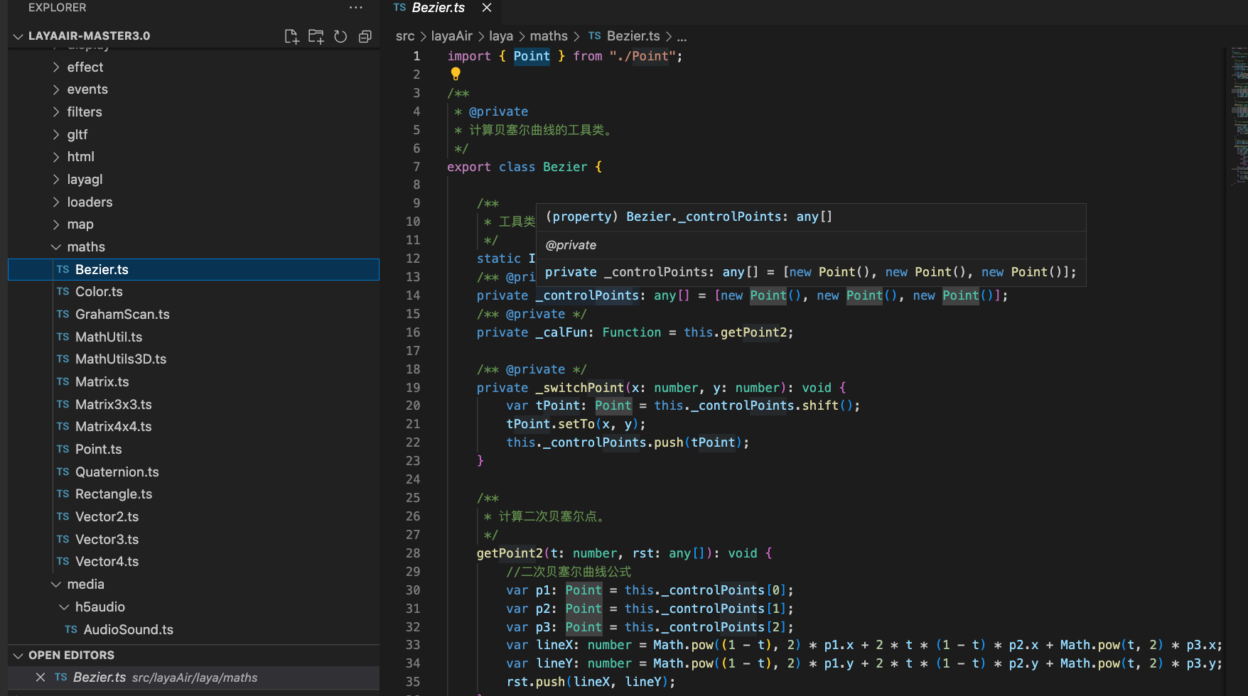 计算贝塞尔曲线的工具类。