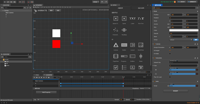两个clip,anim组件在canvas组件上,anim这个脚本也在canvas这个组件上,然后不能播放。。。。各位大佬能不能给看一眼。。。。。。。。