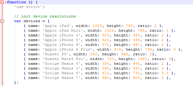 开发测试时,左上角的设备选择里仅有几个预设置的设备分辨率,能否自己添加新的分辨率进去?