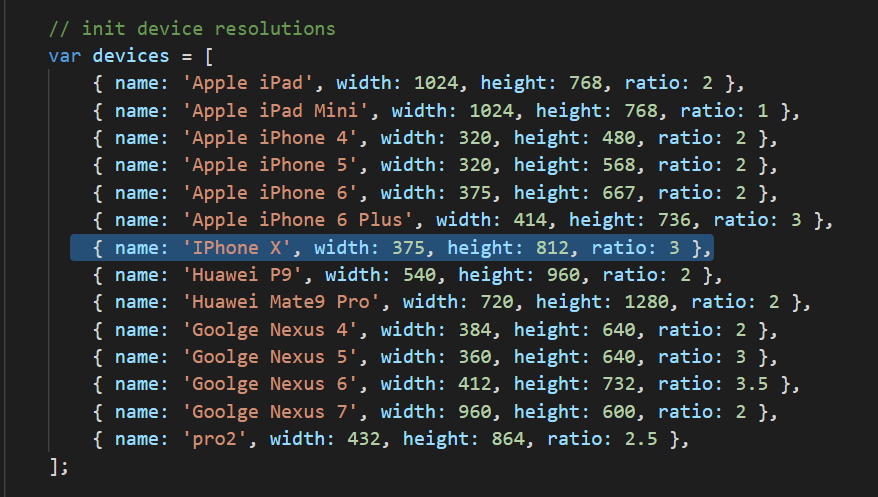 调试时,自定义设备尺寸