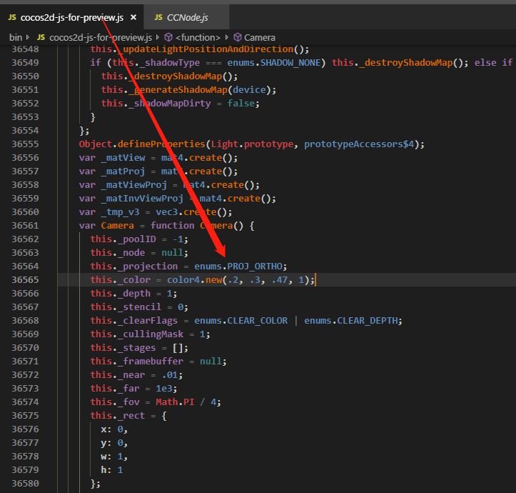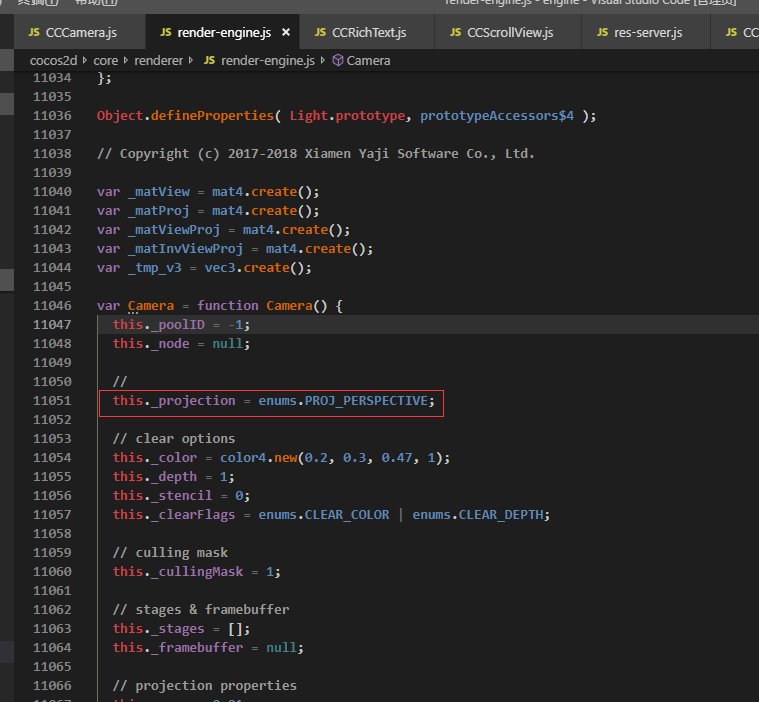 会出现如上图的现像,所以我在翻看引擎源码的时候,发现引擎采用的默认相机是透视相机: