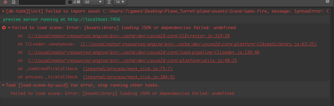你的Game场景有问题,编辑器解析不了,建议用VSCode打开Game.fire文件,看下里面的数据是不是哪里有问题。另外可以在temp/BackupAssets里面找一找,看下能不能回退一下。