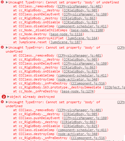 带刚体组件的实体在destroy时候,疯狂报异常,求大佬支援,刚体属性及异常见下图,