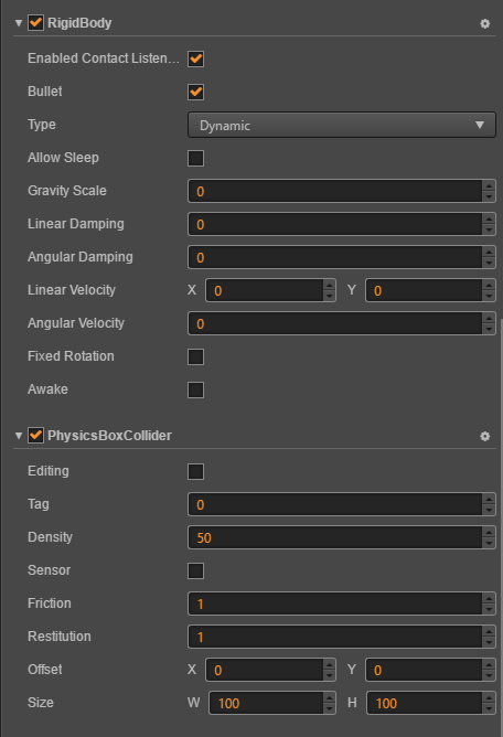 creator版本2.04 两个节点都添加了rigidbody 和physicsboxcollider 两个节点的弹性系数都从0设置到1,碰撞都不弹开。