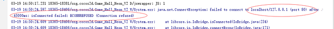 apk打包完成后,在本机木木模拟器运行apk。查看日志:热更新超时。