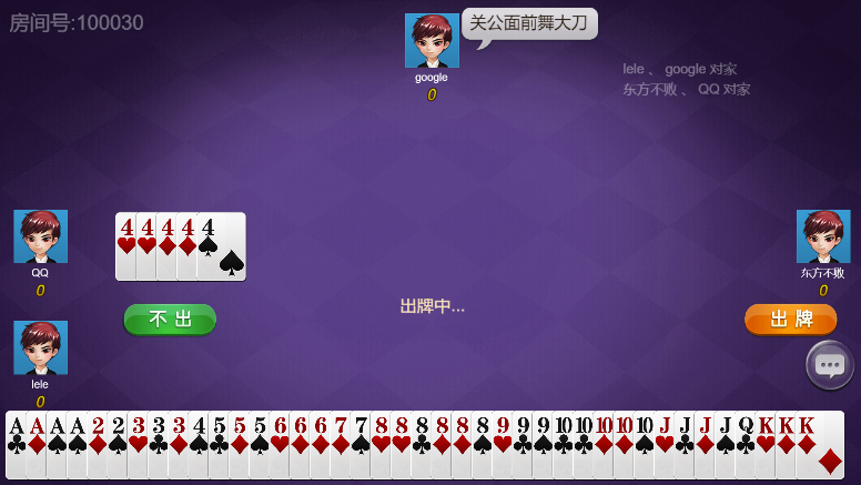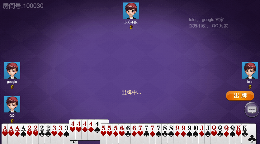 做这个游戏的初衷是为了跟朋友一起在线玩“三星”,“三星”是我们老家的一种棋牌玩法,类似于双扣但玩法比双扣要复杂,需要三幅牌来玩。