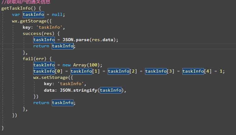 这时候可以正常返回,但用wx的api就无法正常返回,return taskInfo;的话就会返回空