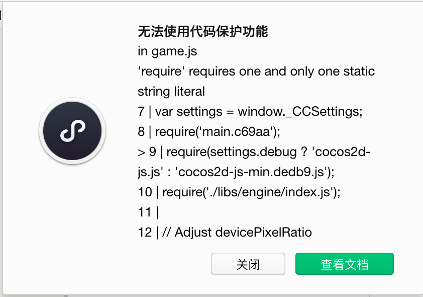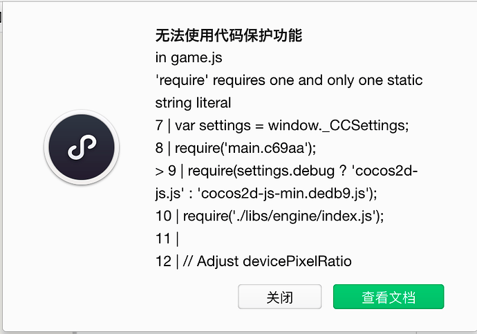 微信小游戏代码保护报错