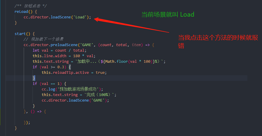 就是说,你在 ‘load’ 场景预加载一个 ‘game’ 场景,然后再 cc.director.loadScene(‘load’),这样就会报错