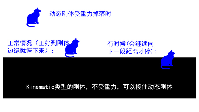 bullet属性 我看介绍是不是只针对快速移动的刚体呀。。? 我把底下的Kinematic刚体和上面的动态刚体都选中了bullet属性,还是会出现这个问题。。