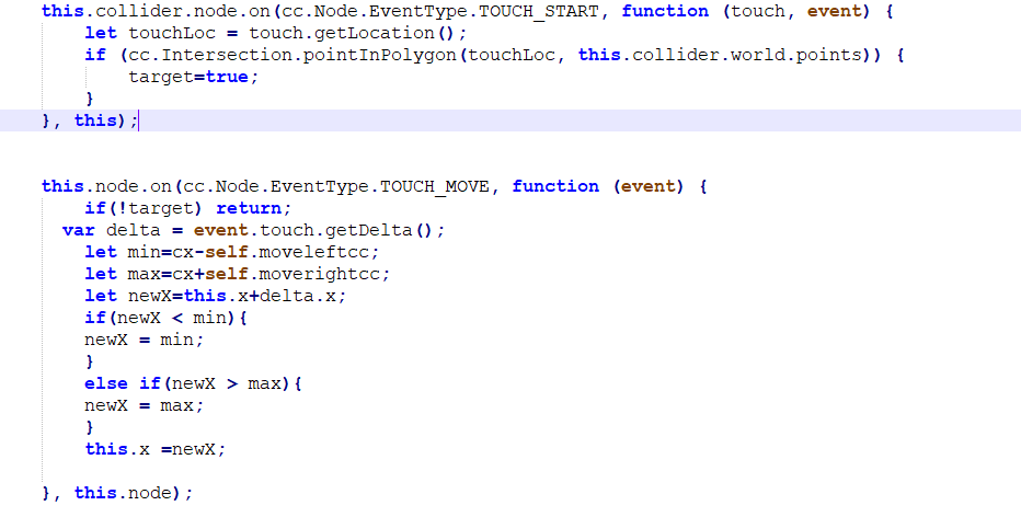 首先给对象加个多边形碰撞组件,然后在点击触发(TOUCH_START)时,