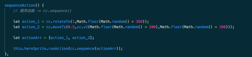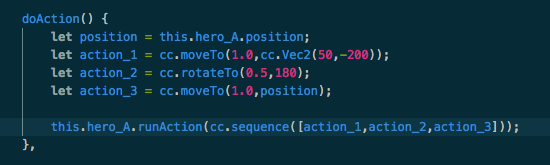node.runAction ( cc.sequence ( cc.moveTo ( durationA, posA ), cc.rotateBy ( durationC, (正负)90, cc.moveTo ( durationB, posB ) );