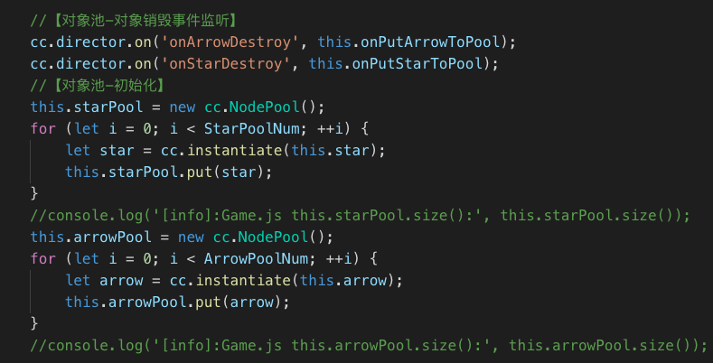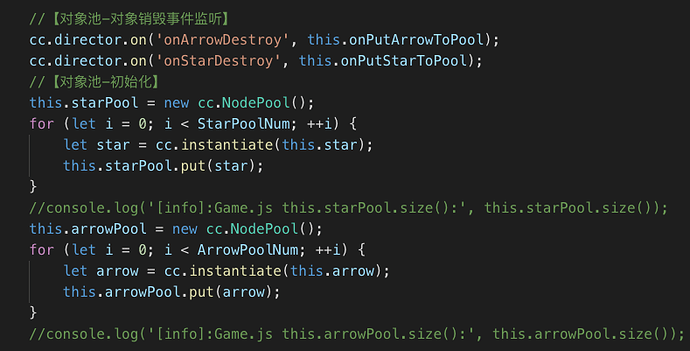 不过建议把对象池操作 也放到 game.js内 统一管理,