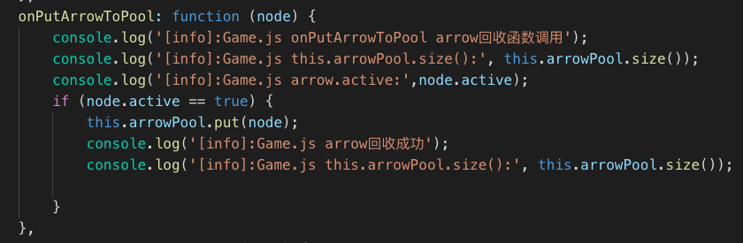 但是我在game.js中其他地方调用onPutArrowToPool函数,都可以成功回收节点。
