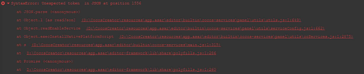 解决了,错误来源于service. json,英文版的creator service. json文件被加了许多错误换行导致报错,我将正确的service. json进行了替换解决