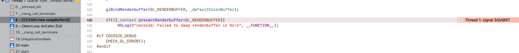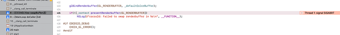 NSLog(@“cocos2d: Failed to swap renderbuffer in %s\n”, FUNCTION);