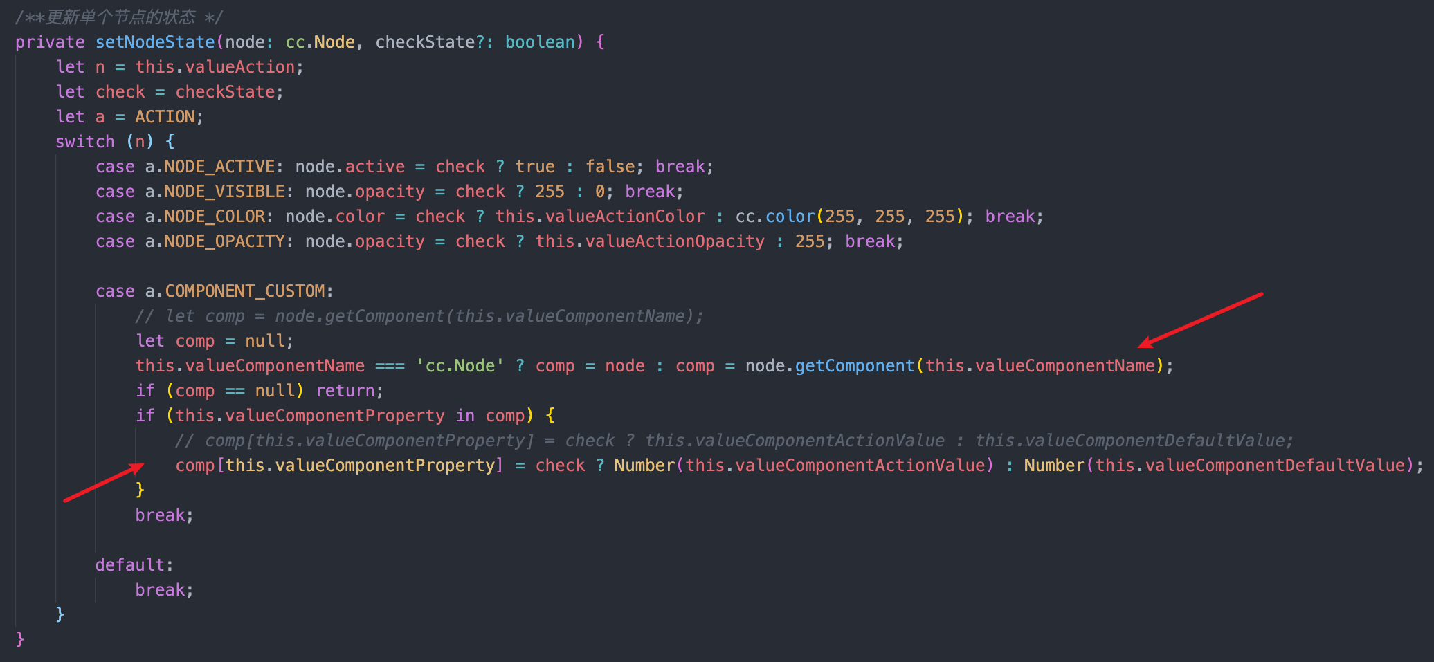 - 还有就是对节点属性修改的时候,因为cc.Node不是一个组件,所以不能通过getComponent的方式获得,这个地方需要对cc.Node做另外处理。