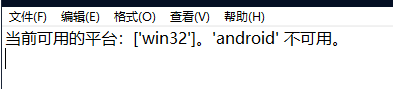 详细报错信息,包含调用堆栈:当前可用的平台:[‘win32’]。‘android’ 不可用。