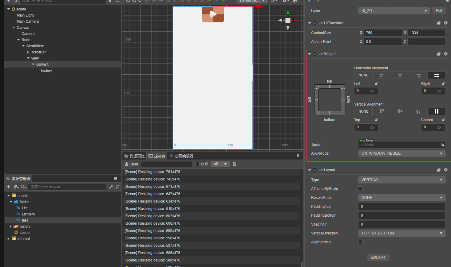 用cocos 3.2.1的版本,把List拖动到ScrollView上以后,我的ScrollView 和view 和content高度都设置了widget,widget宽高等于屏幕的大小,