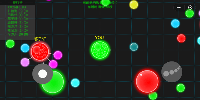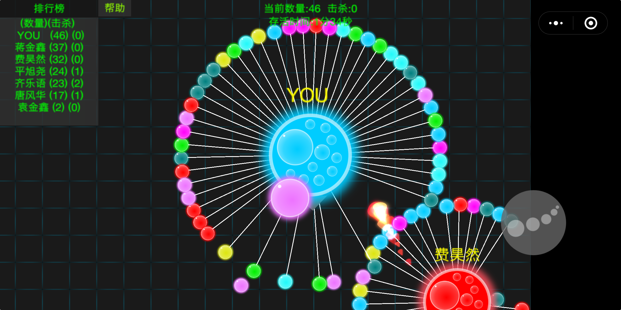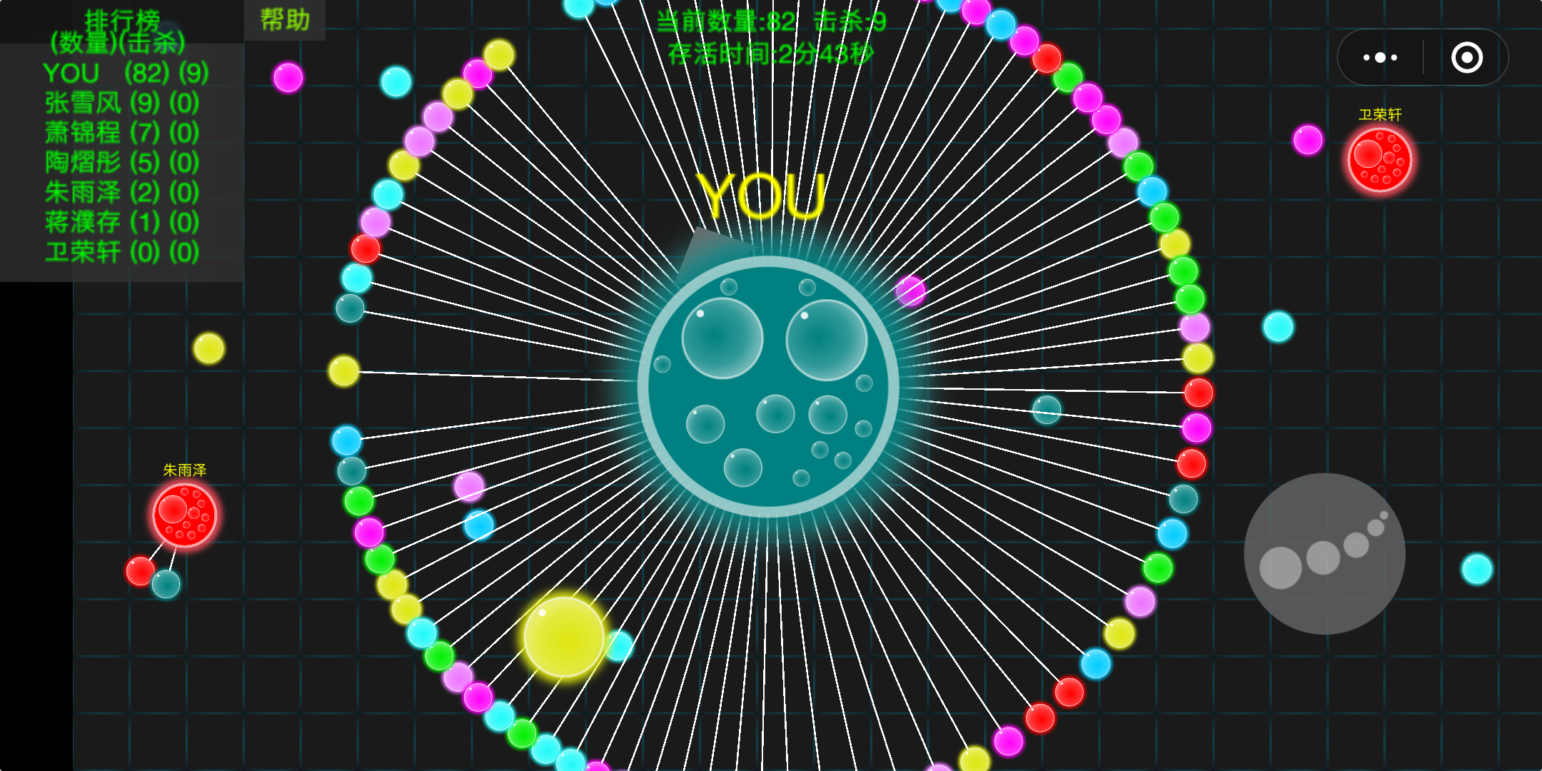 3:控制中心球,小心不要 其他玩家 周围的小球,注意躲避。同时 控制中心小球移动,通过周围的小球可以将其他玩家 击败