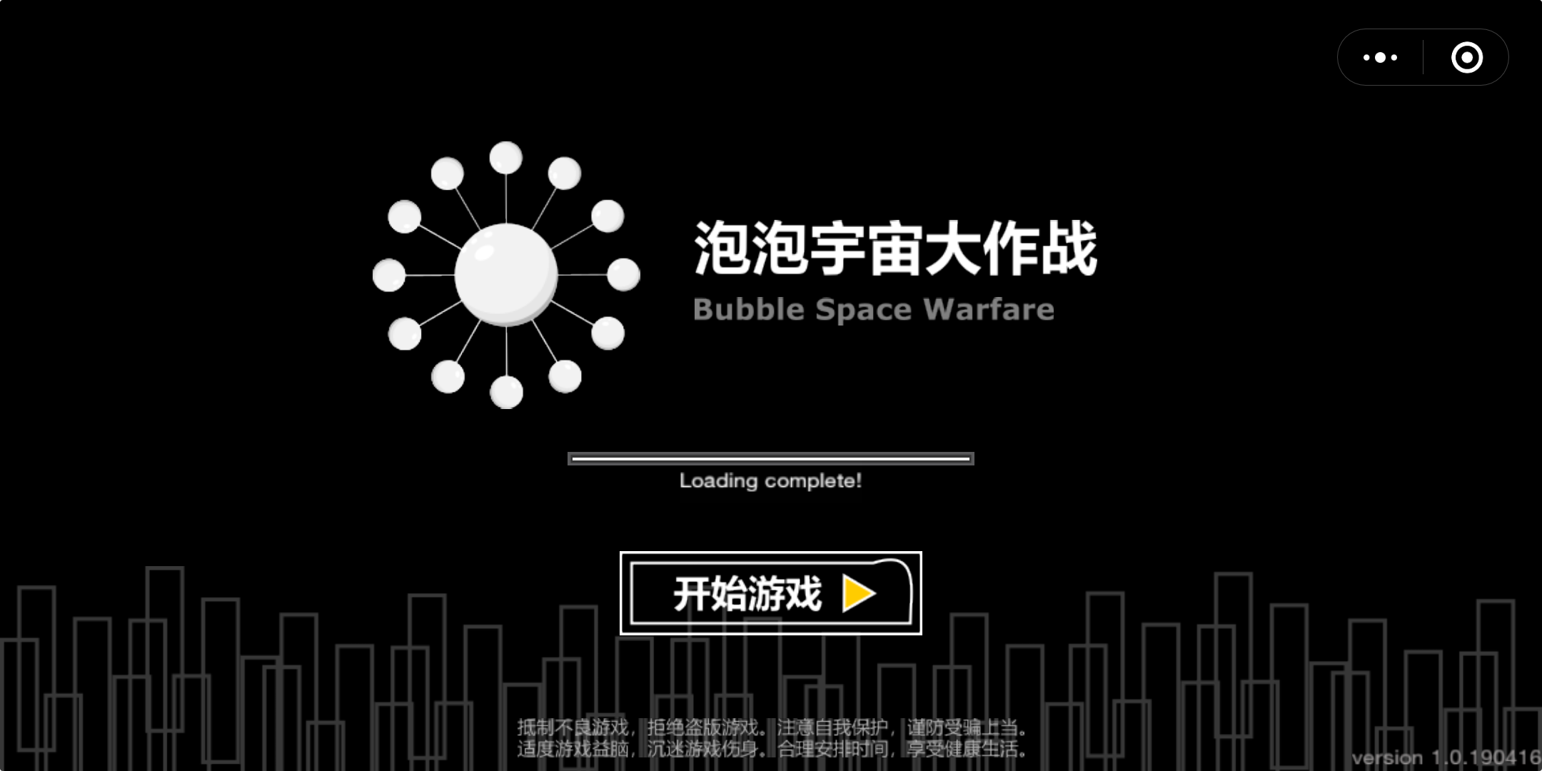 首先需要做两个场景,第一个场景尽量少,类似于下图这种,给个logo,给个进度条就好了,避免用户打开游戏的时候卡。图片资源尽量小一点,第二个场景是真正的游戏场景。