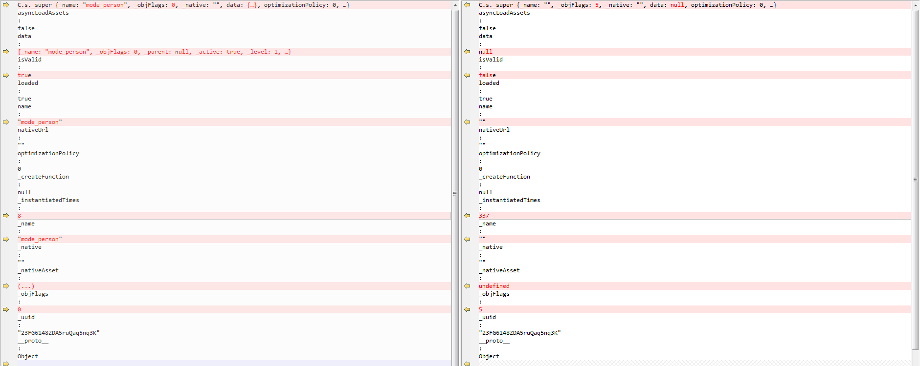 左边是创建成功时的预制体信息,右边是创建失败时的预制体信息。