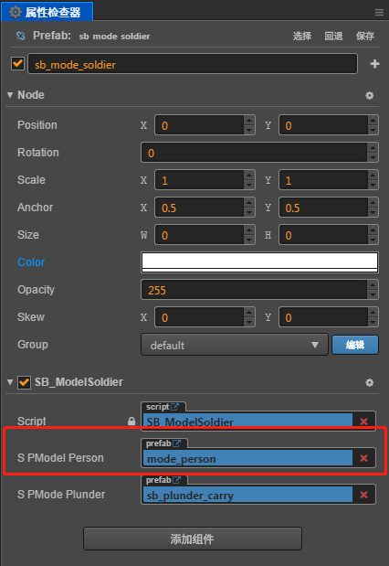 所以我将【节点B】的预制体放在节点A的脚本中进行设定,如图: