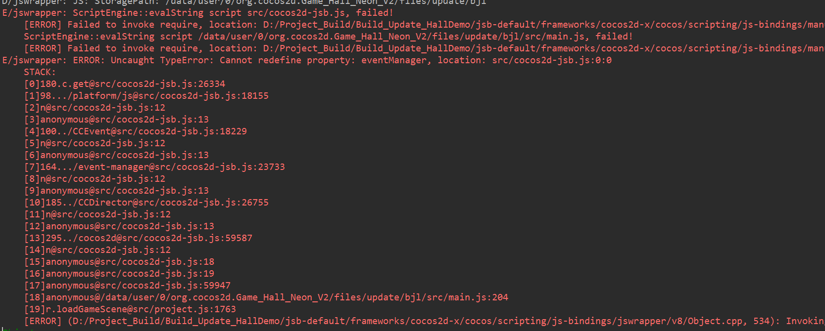 将子游戏远程资源文件写入本地完成后 执行js脚本嗝屁了。cocos才玩没多久 需要各位大佬帮助。报错如图: