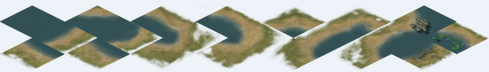 生成这张图的方式也很巧妙,本来是打算让美术手帖,感谢一个灵性老哥的提(zhi)醒(dian),使用tiledmap建立交错地图,利用tiledmap拼成想要的样子,然后导出为图像,需要注意的是根据uv坐标系,需要从左上角开始铺图,另外还有一个问题注意边界问题,假设图宽为2048,那么你一行最好是放7张set,为什么呢,细心的你会发现偶数行的贴图其实是前一行贴图的右下偏移。