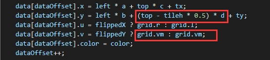 3.tmx-layer-assembler.js中render_data数据填充的时候,修改顶点坐标和uv映射: