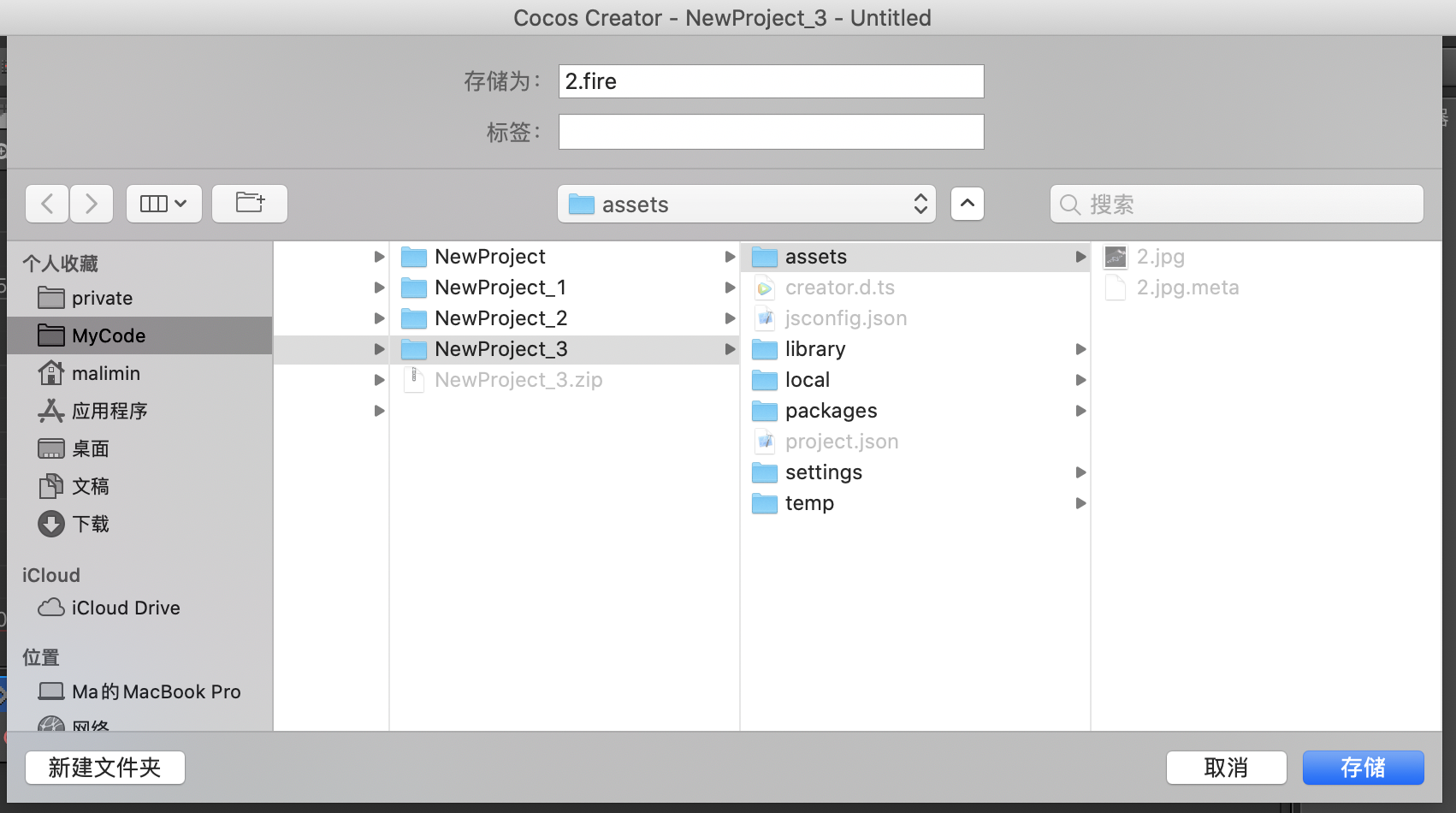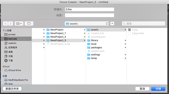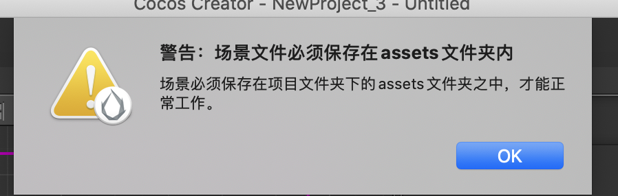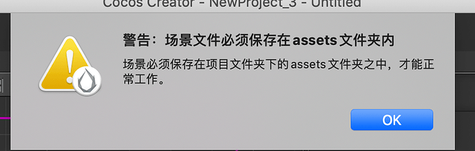我新创建了一个项目,随便在场景里面,新建一个Sprite,里面有个图片,然后保存,但是提示我“场景文件必须保存在 assets 文件夹内”,Cocos Creator 2.1.2,系统Mac os 10.15 Beta 版(19A512f)
