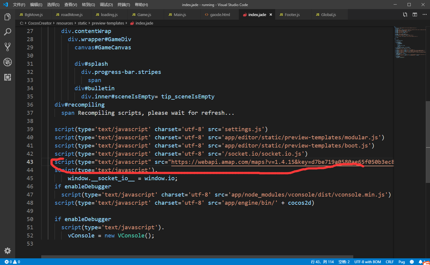 jade里面已经引用了,我真的是小白,硬生生到处改,还要修改哪些才可以显示出地图来