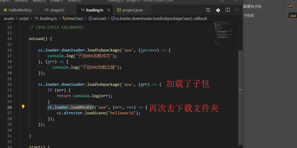 我在loading界面通过cc.loader.downloader.loadSubpackage加载了子包,同时游戏界面使用了子包内的一张图片资源,当我从loading界面跳转到游戏界面时,微信开发者工具会提示我:所在分包尚未加载。所以我有点疑问,cc.loader.downloader.loadSubpackage加载了子包,却不能在其他界面使用。后来我在加载子包成功回调方法内使用cc.loader.loadResDir再次加载文件夹之后,这个问题就没有了。but,,,这不是相当于加载了两次么