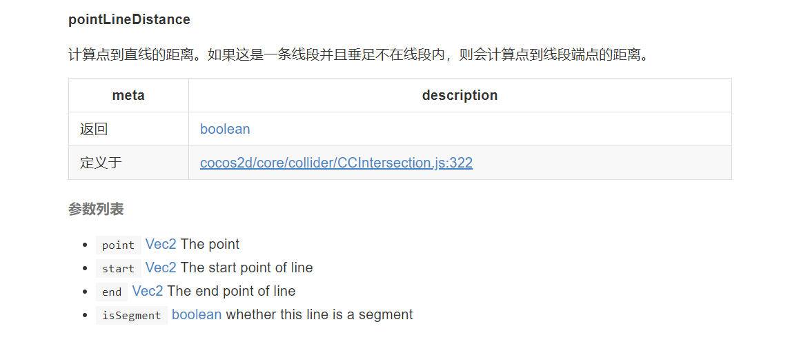 cc.Intersection .pointLineDistance的返回值应该不是bool值