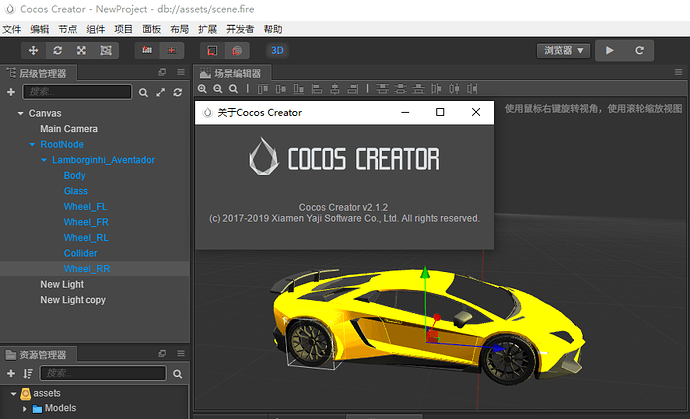 请问为什么creator的轮胎位置不正确?我想控制轮胎的rotation,在creator里会绕着车身转,而u3d中不会,如何正确实现轮胎旋转呢?