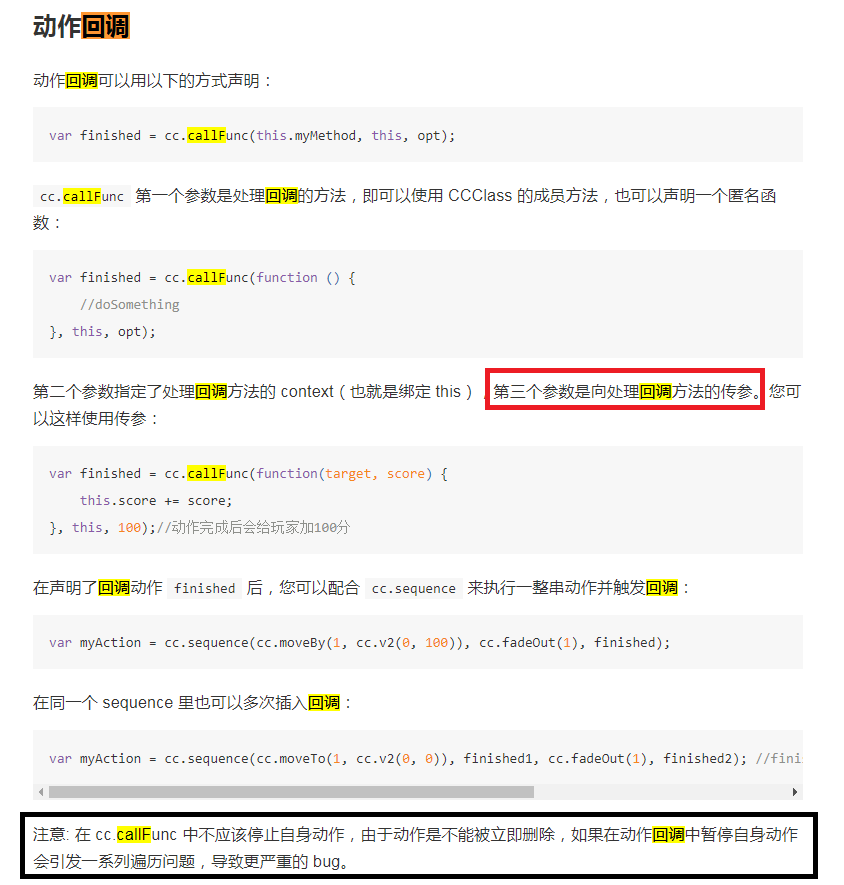 问题2:上图黑框内容,意思是不是:回调方法里面不能有暂停自身动作的方法? 也就是可以这样理解:如果回调方法里面有执行其他节点的动作A,我暂停A,是没有问题的?